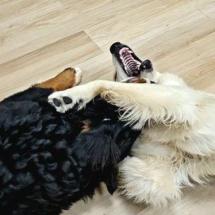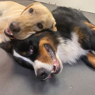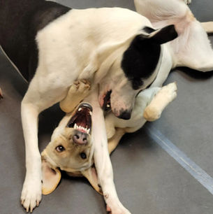 Participating in our program will inherently enhance your dog's social skills, boost their confidence, and improve their overall quality of life through consistent exercise and mental stimulation, alleviating boredom. Recognizing that dogs are inherently pack animals, we treat them as such during their time at Happy Hound. Rather than separating them, we encourage dogs to develop their natural instincts in a structured and supervised environment, ensuring the safety and well-being of each individual dog.